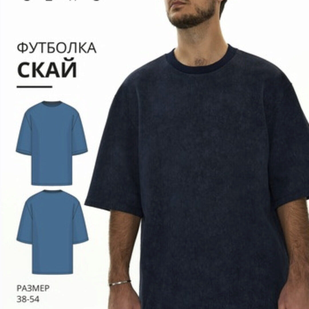 Выкройка мужской футболки большого объема, прямого силуэта. Линия плеча спущенная. Рукав втачной, короткий. Вырез горловины круглый, обработан бейкой. Длина футболки до линии бедер. Модель Данил: ОГ 100, ОТ 84, ОБ 105, рост 184. Выбранный размер: 44, рост 2 (178-184). Примерное время пошива – 1