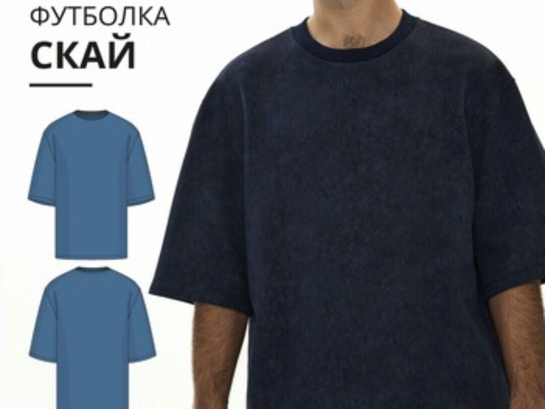 Выкройка мужской футболки большого объема, прямого силуэта. Линия плеча спущенная. Рукав втачной, короткий. Вырез горловины круглый, обработан бейкой. Длина футболки до линии бедер. Примерное время пошива – 1 день.