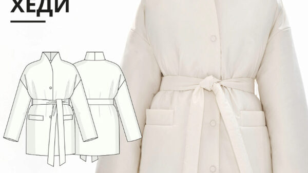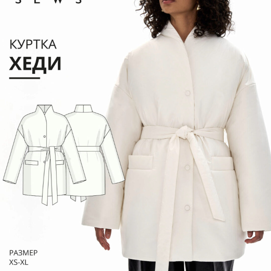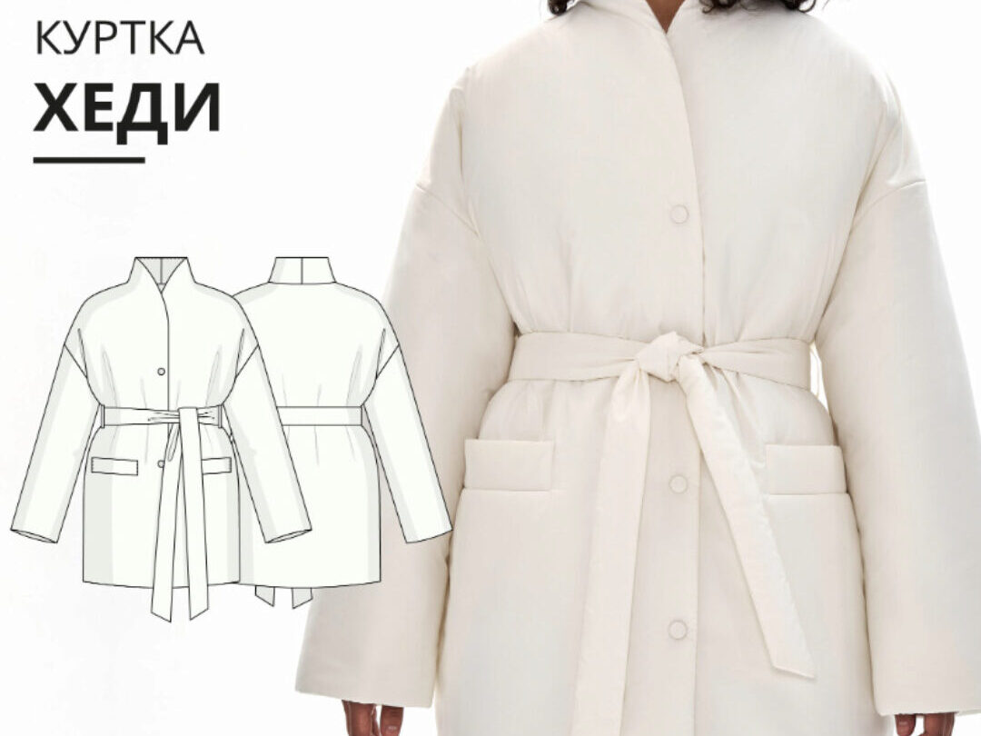 Курс Vikisews - Куртка Хеди. Размеры XS-XL, рост 162-168, автор Виктория Ракуса. Выкройка куртки большого объема на утеплителе, прямого силуэта, на притачной подкладке. На полочках прорезные карманы с листочками с настрочными концами. Линия плеча расширена. Рукав рубашечный, большого объема, длинный, одношовный. По низу подкладки рукава притачная трикотажная манжета. Воротник – цельнокроеная стойка. Застежка однобортная, на пробивные кнопки. Пояс съемный, фиксируется шлевками в боковых швах. Длина куртки ниже линии бедер.