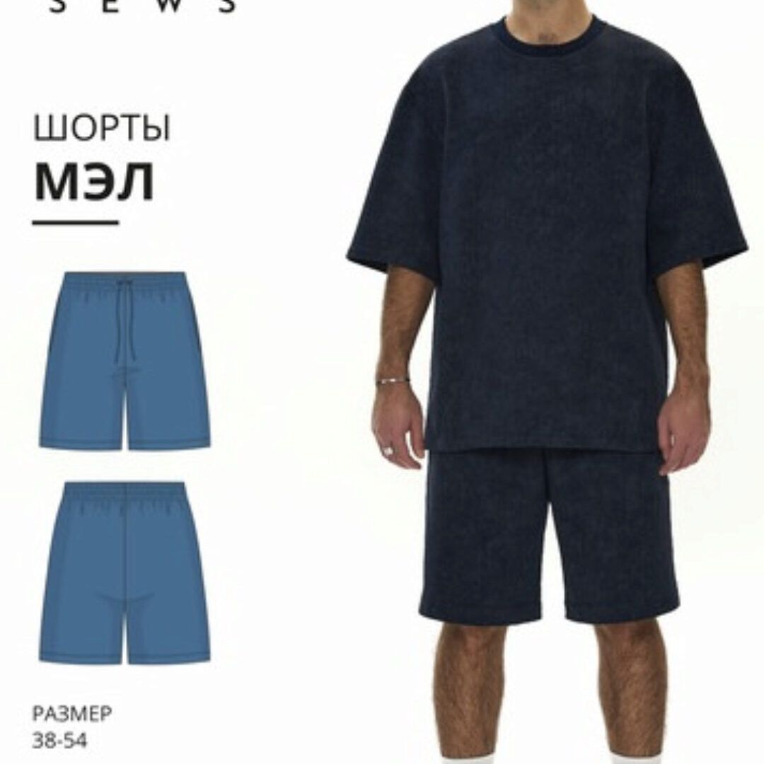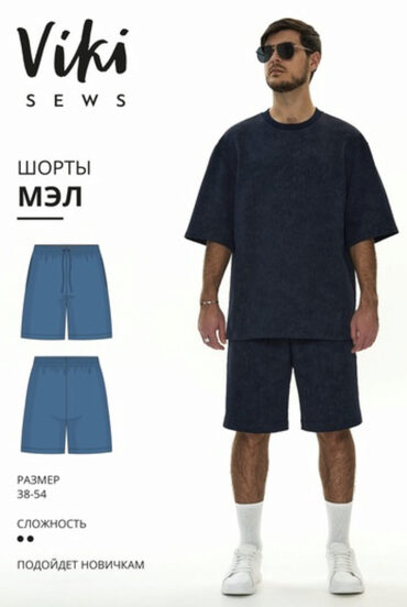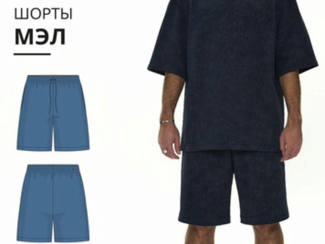 Выкройка мужских шорт умеренного объема, прямого силуэта. В боковых швах шорт расположены карманы. Пояс шорт цельнокроеный на резинке с обметанными петлями, через которые вставлен декоративный шнур. Длина шорт до колена. Для пошива шорт подойдут трикотажные полотна, которые обладают следующими