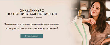 Курс для новичков Начать шить можно в абсолютно любом возрасте, главное желание! Курс для новичков - это специальная программа, которая поможет вам освоить базовые знания в шитье и создавать любимые вещи самостоятельно. Начните шить уже сегодня! Ваш преподаватель Валерия Останий Программа курса Вся
