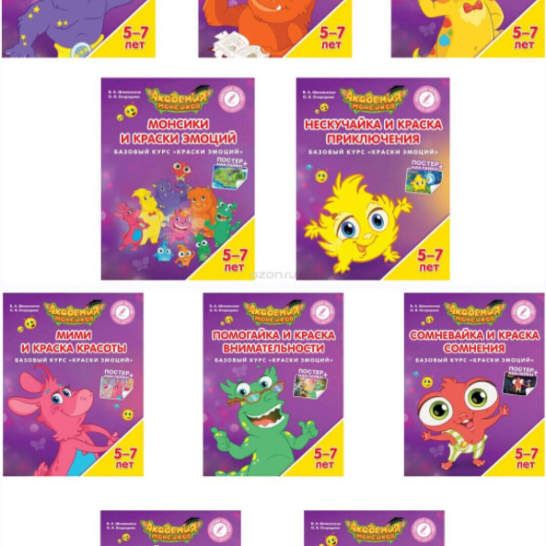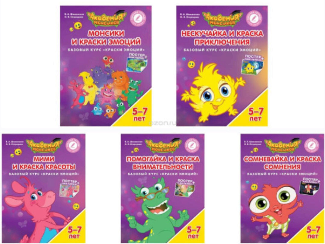 Книга 4 Монсики и Краски Эмоций. (Автор: Шиманская В.А., Огородник О.Я.) Рабочая тетрадь «Монсики и краски Эмоций» является вводным пособием курса «Краски Эмоций», который знакомит детей с базовыми эмоциями, а также с ключевыми понятиями, необходимыми для социализации и самоорганизации. Выполняя интересные задания тетради, дети познакомятся с картой Долины Монсиков и узнают, где находятся Лес Страха, Горы Достижений, Болота Лени, Город Счастья и другие сказочные места. А Компас Эмоций покажет, как зовут каждого Монсика, чем он занимается, за какие эмоции и чувства он отвечает. Задания тетради «Монсики и краски Эмоций» представляют собой увлекательный квест-приключение и направлены на развитие внимания, наблюдательности, мелкой моторики рук и навыков письма, логического мышления и простых навыков коммуникации.