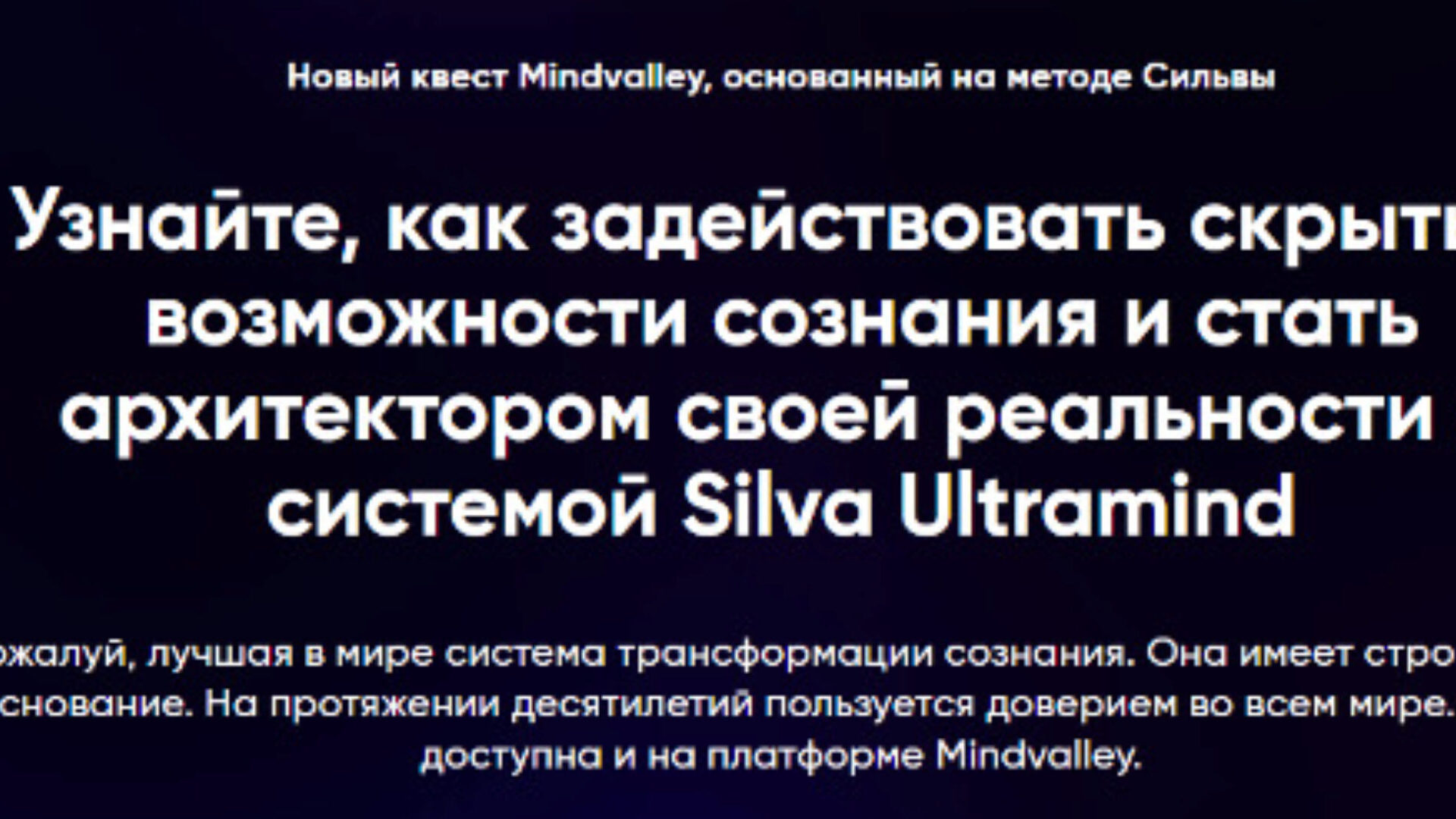 Квест «Silva Ultramind: система управления разумом» был создан Вишеном для Mindvalley с целью познакомить новое поколение студентов с методом Сильвы — теми самыми удивительными техниками, благодаря которым можно пробудить весь скрытый потенциал человеческого разума.