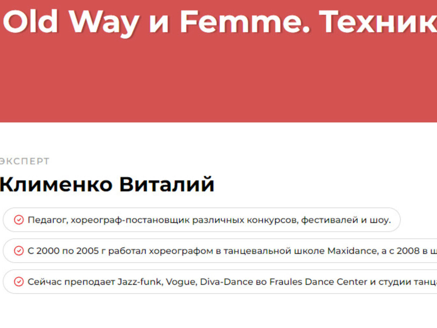 Виталий Клименко «Vogue. Old Way и Femme. Техника и связки» слив скачать