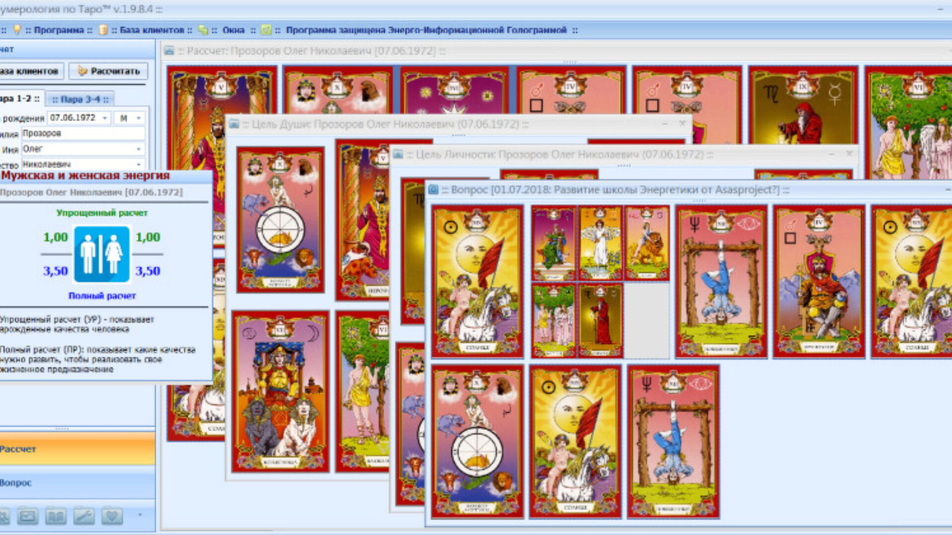 Нумерология ТАРО - это моя авторская, уникальная система анализа и прогнозирования судьбы человека. Она родилась в начале двухтысячных и все эти годы система активно развивается, обрастает новыми техниками, формулами. Если кратко, Нумерология ТАРО - это сплав карт ТАРО и нумерологии. Это не