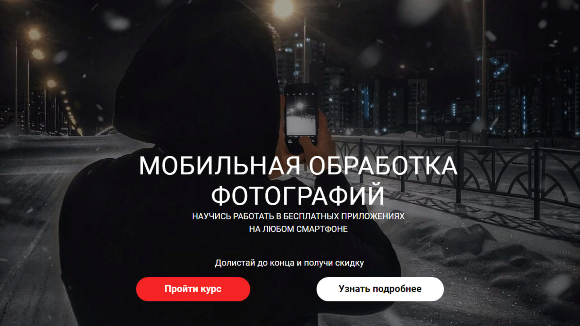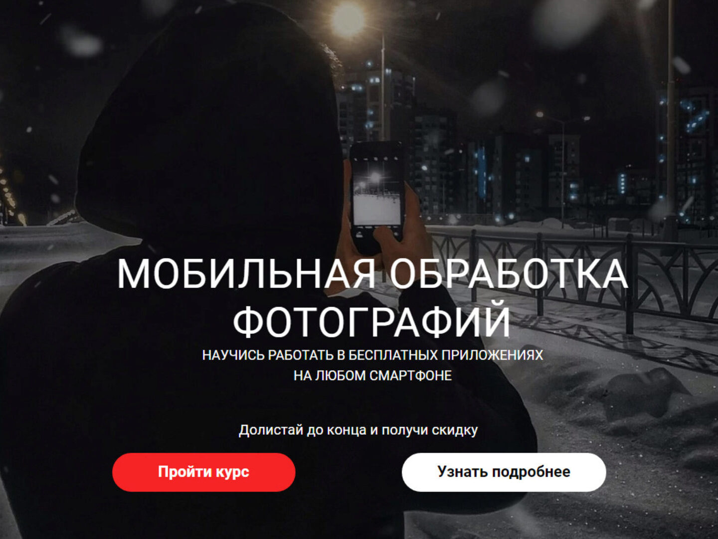 Курс «Мобильная обработка фотографий» С тех пор как почти в каждом смартфоне появилась камера с высоким разрешением, мобильная фотосъемка стала неотъемлемой частью нашей жизни: фотографии на телефон, смартфон или планшет делают все, но у одних это получается красиво, а другим едва удается