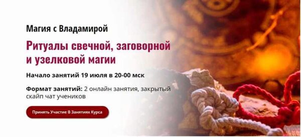 Придя на мини-курс Владамиры, вы освоите эффективную Магию и узнаете и научитесь работать с обрядами: