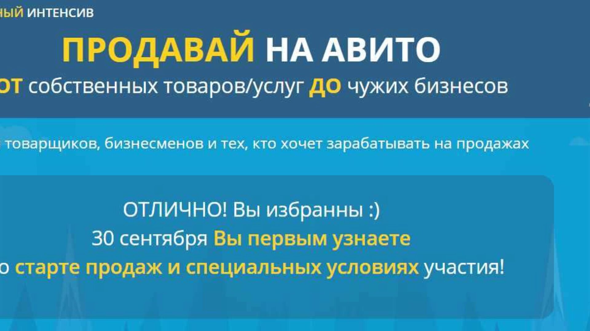 На интенсиве вы узнаете, каких элементов в продаже через Авито вам не хватало, чтобы сразу начать зарабатывать (тестирование, тонкости объявлений, прогнозы и аналитика и пр.).
