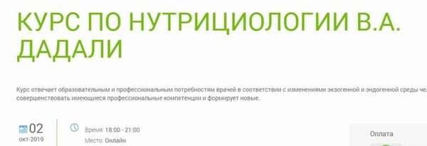Владимир Дадали «Курс по нутрициологии» слив скачать
