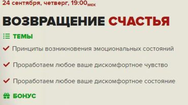 Да, Вы можете получить получить бесплатно фрагмент курса «Возвращение счастья», просто напишите на почту или в телеграм