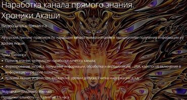 Авторский тренинг-практикум по наработке канала прямого знания и технологиями получения информации из Хроник Акаши.