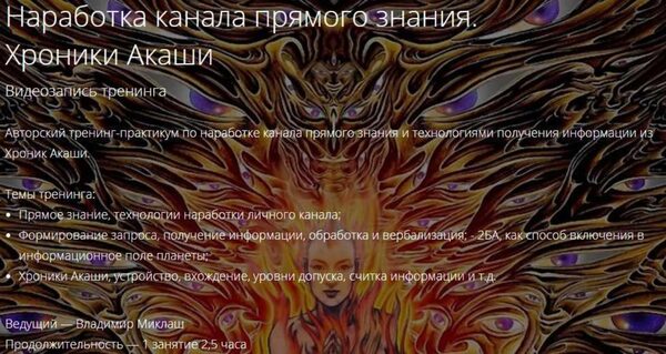 Владимир Миклаш «Наработка канала прямого знания. Хроники Акаши» слив скачать
