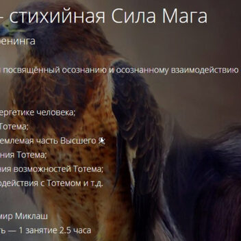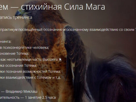 Тренинг-практикум посвящённый осознанию и осознанному взаимодействию со своим Тотемом.