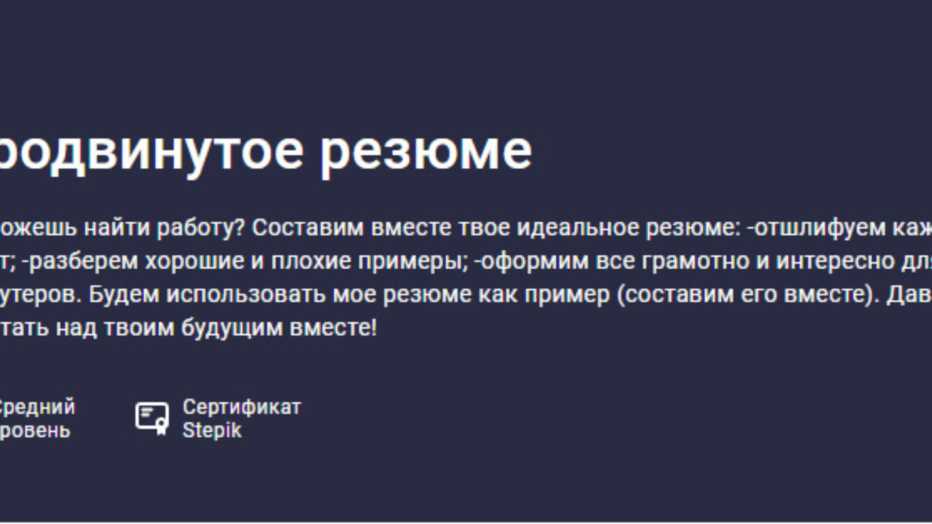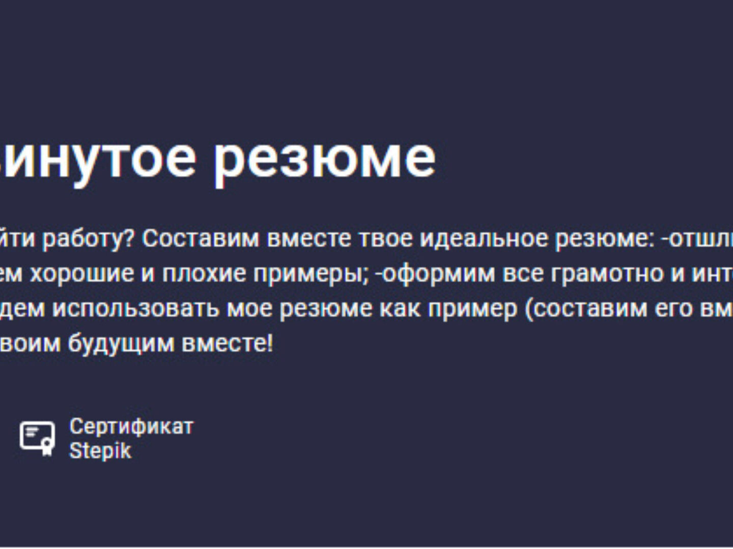 Владимир Петухов «Продвинутое резюме» — Stepik слив скачать