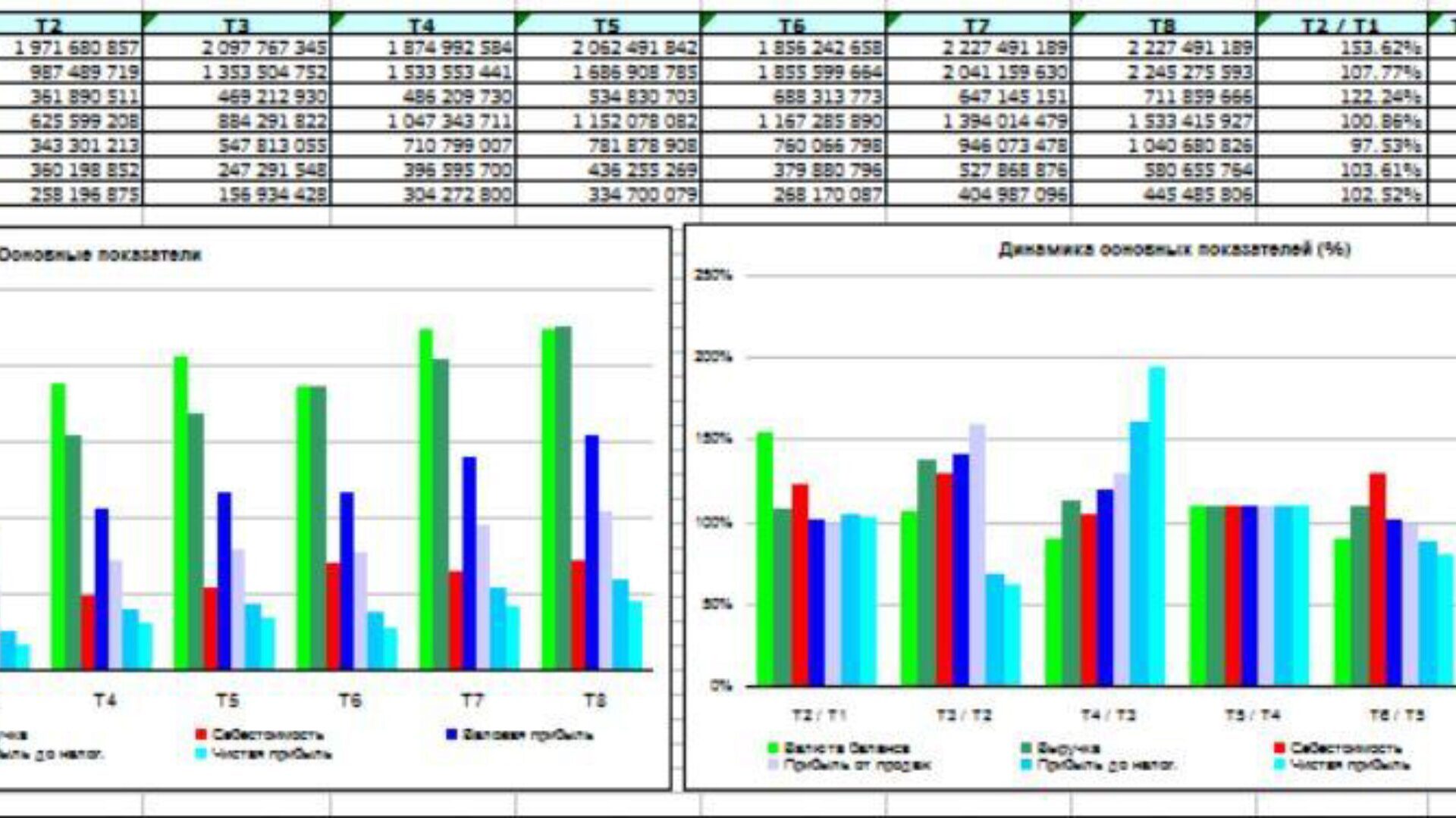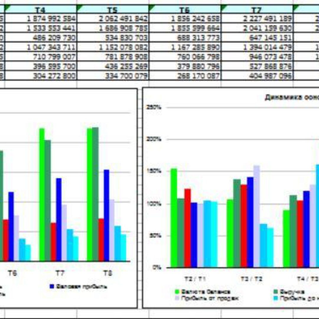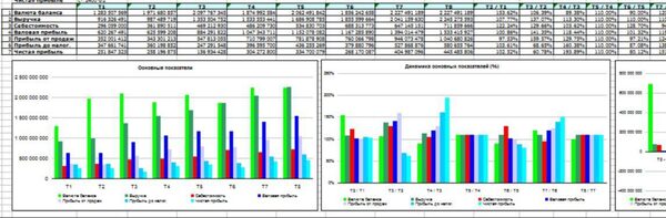 Расчет по Балансу и ОПУ (формат РСБУ) 70 коэффициентов, 50 графиков