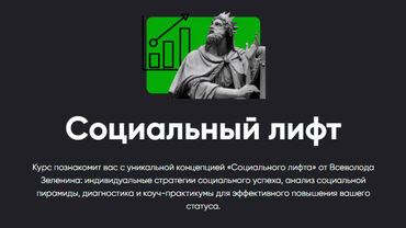 Курс познакомит вас с уникальной концепцией «Социального лифта» от Всеволода Зеленина: индивидуальные стратегии социального успеха, анализ социальной пирамиды, диагностика и коуч-практикумы для эффективного повышения вашего статуса.