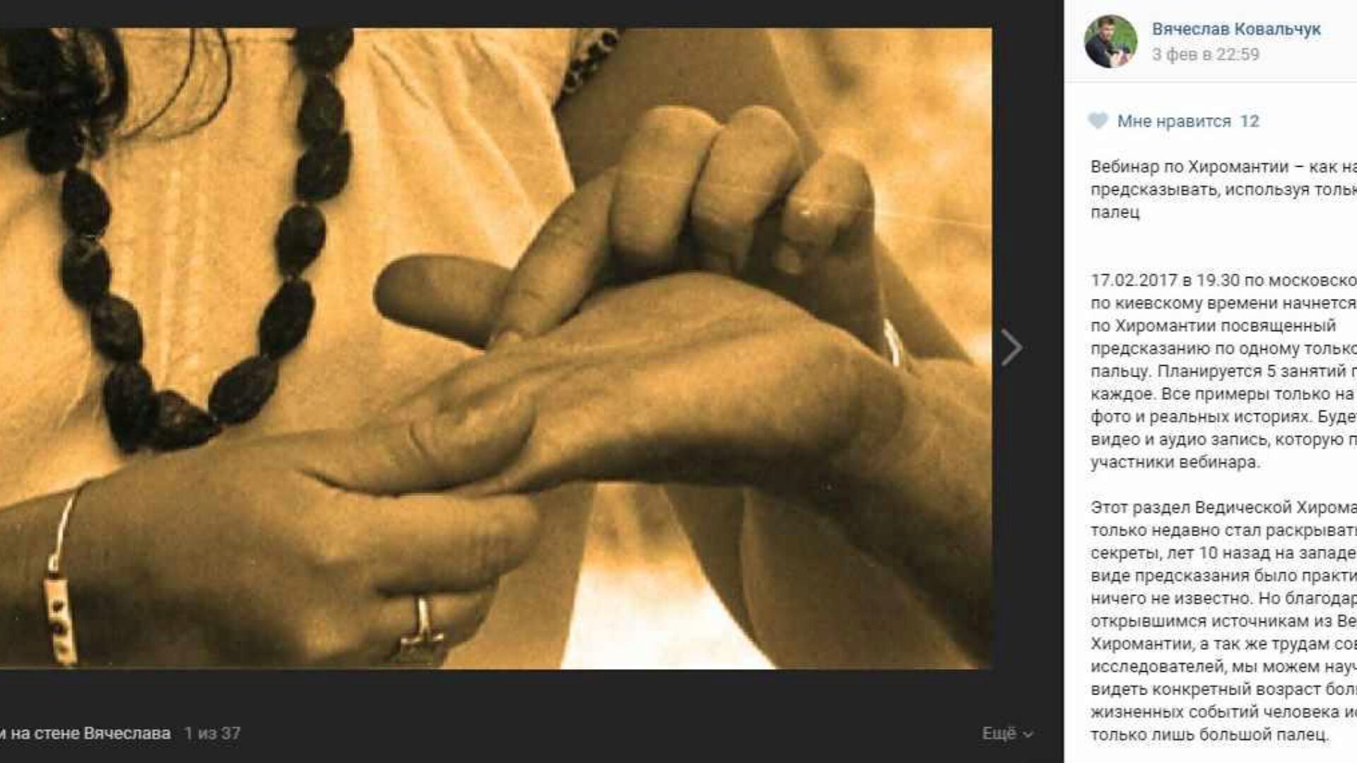 Отзывы о курсе «Вебинар по хиромантии» от Вячеслава Ковальчука