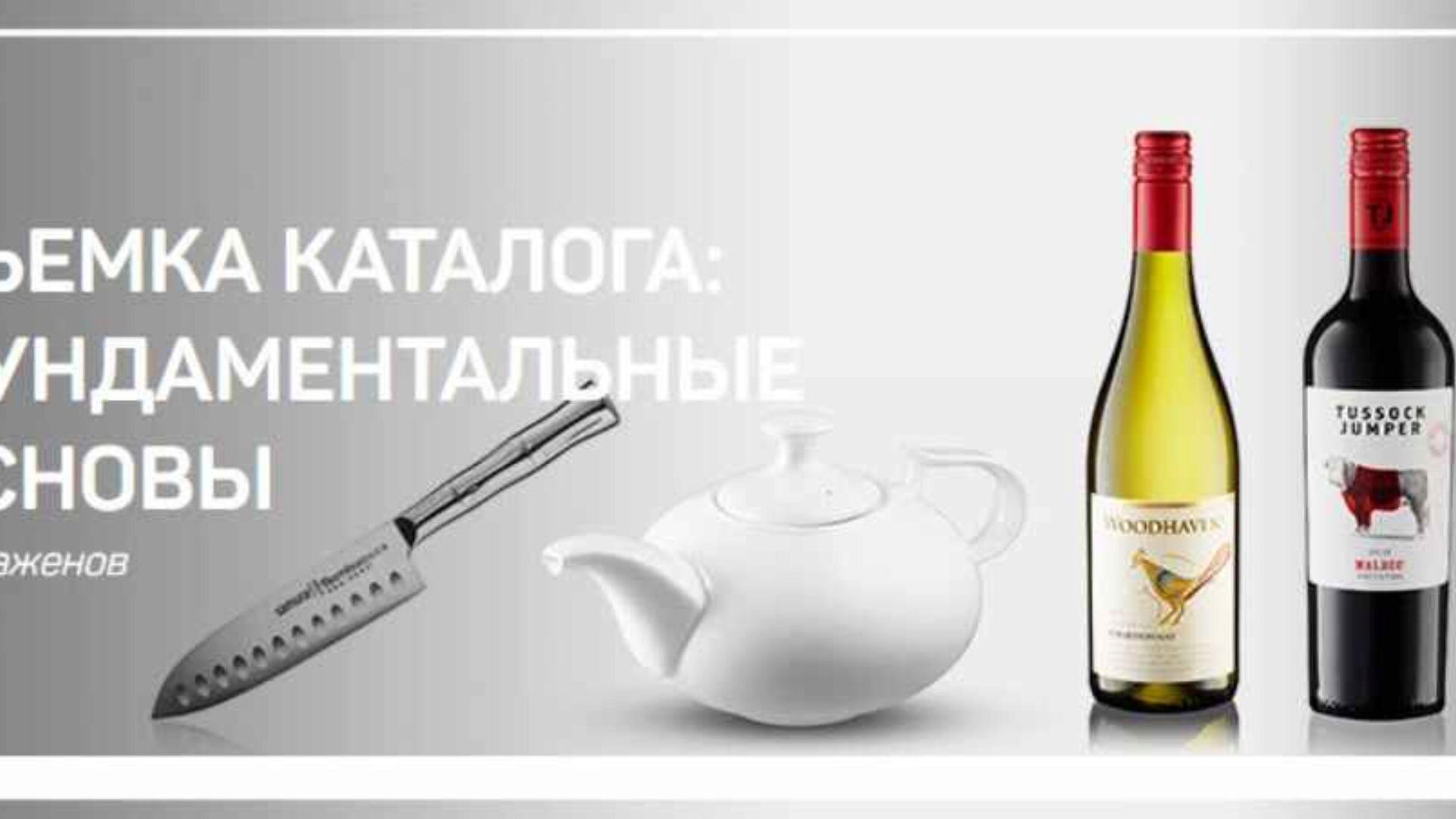 Это первый практический класс по каталожной съемке, на котором вы изучите базовые приемы освещения и принципы предметной съемки. Демонстрация и обучение будут проходить на классически сложных примерах – стекле, съемке вертикальных высокоотражающих объектов (красное и белое вино), белых предметов на белом фоне и металла (нож со сложным брашированием).