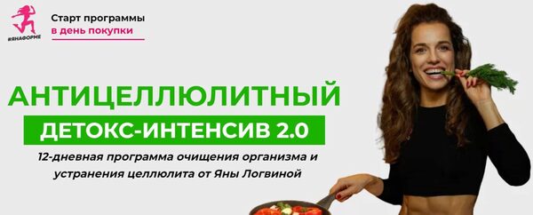 Курс Антицеллюлитный детокс интенсив 2.0. Тариф Базовый, автор Яна Логвина. 12-дневная программа очищения организма и устранения целлюлита от Яны Логвиной