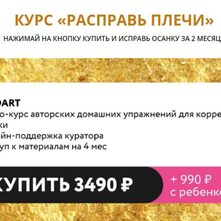 Вам будет полезен интенсив, если: -Ответственные родители и вас беспокоят торчащие и/или ассиметричные лопатки, или завернутые плечи ваших детей -Если вам не нравится как торчат ваши лопатки -Если одно плечо выше другого -Мучаетесь от боли между лопаток -Регулярно испытываете боль в шее: после