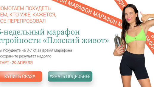 Как похудеть к лету и больше не набирать вес, если тебе уже 30+ С таким наполнением программы результат вам гарантирован: - Тренировки от Кати максимально эффективны для тех, кто старше 30 20 тренировок по 30-40 минут с понедельника по пятницу. Требуемое оборудование: коврик, гантели, резинки и