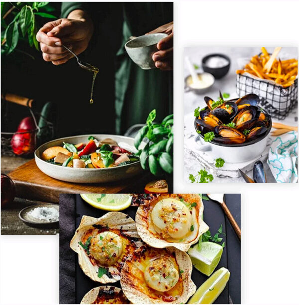 - Теоретическая информация по каждому морепродукту (с основным и дополнительным рецептов