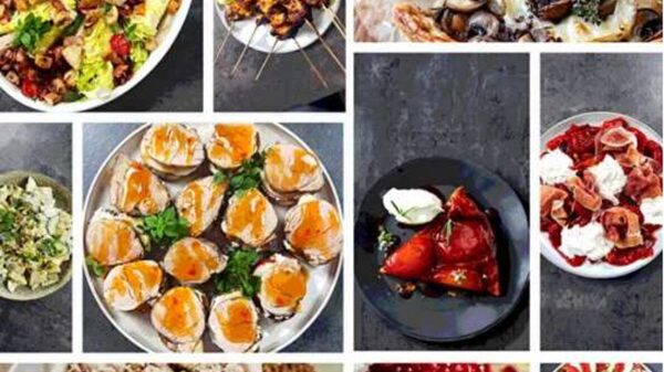 Меню: Праздничная галета с тыквой и остренькими колбасками Гарнир-салат из картофеля и стручковой фасоли в медово-горчичной заправке Капрезе с румяными баклажанами и сочными томатами Оригинальный яркий греческий салат с нутом Яйца, фаршированные зеленым пикантным муссом на основе авокадо Авторские