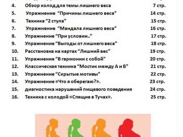 - обзор рекомендуемых колод для работы с темой лишнего веса