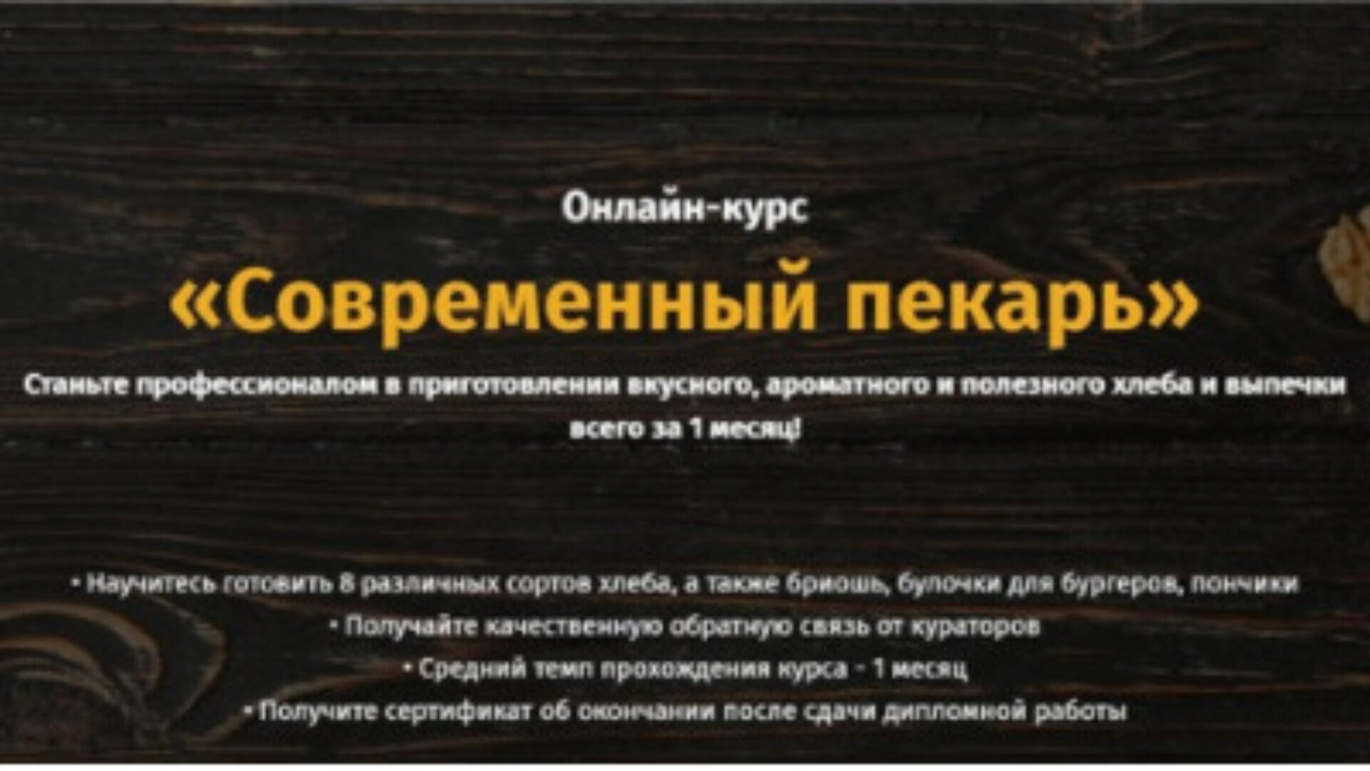 Станьте профессионалом в приготовлении вкусного, ароматного и полезного хлеба и выпечки всего за 2 месяца! Вы узнаете все детали приготовления хлеба и выпечки! Научитесь выпекать хлеб на дрожжах и хлеб на закваске, итальянскую чиабатту и венские булочки для бургеров, а также тартин, пончики и