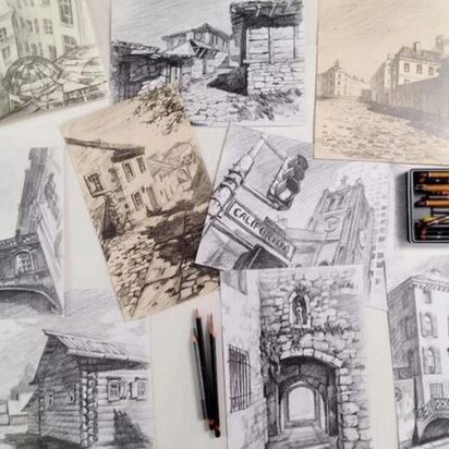 После вводных уроков о материалах и видах перспективы вы приступите к практике и выполните работы с разных референсов. Особое внимание мы уделим построению, композиции и тональному разбору каждого пейзажа.