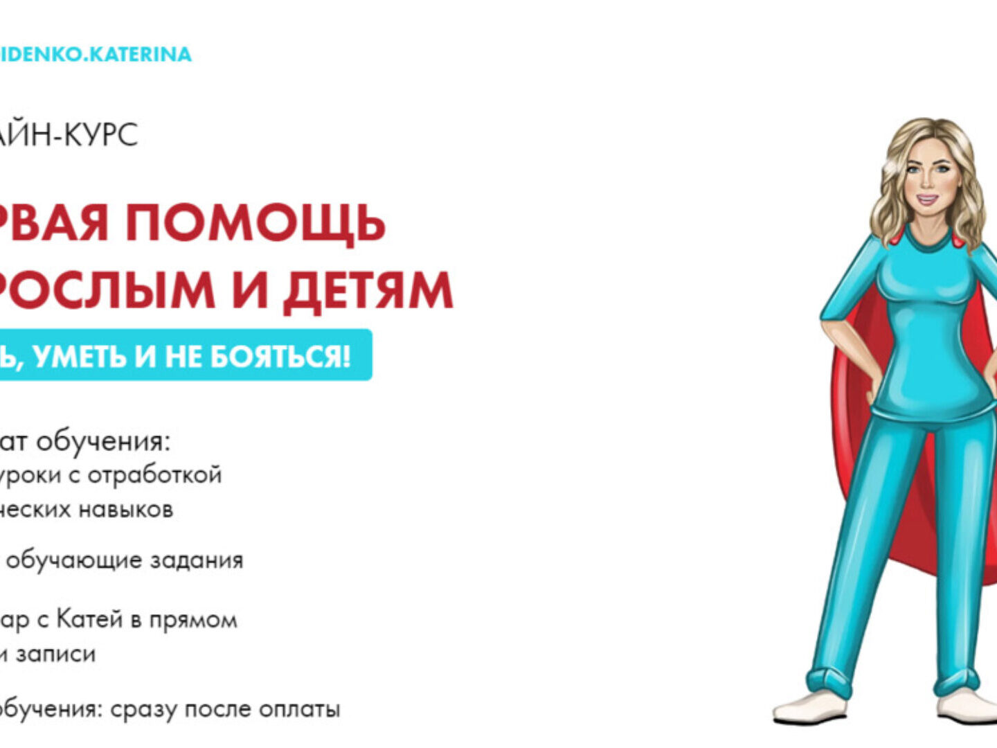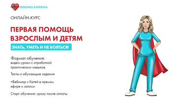 Курс Первая помощь взрослым и детям, автор Екатерина Диденко. Это курс для тех, кто хочет научиться не паниковать, а правильно действовать в экстренных ситуациях, спасая близких и окружающих!