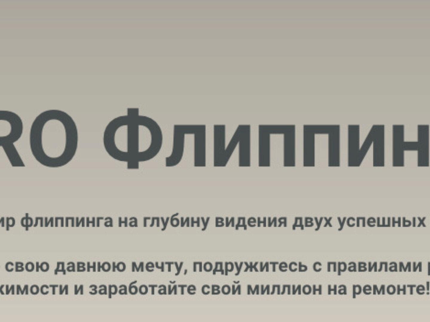 Миллион на ремонте. Пакет полный цикл Полный цикл ведения проекта под флиппинг. Мы полностью ведём проект от поиска и покупки объекта, до сопровождения ремонта/упаковки и реализации (продажи объекта). Мы рады помочь вам с подбором, организацией ремонта или упаковкой инвестиционного объекта, а также