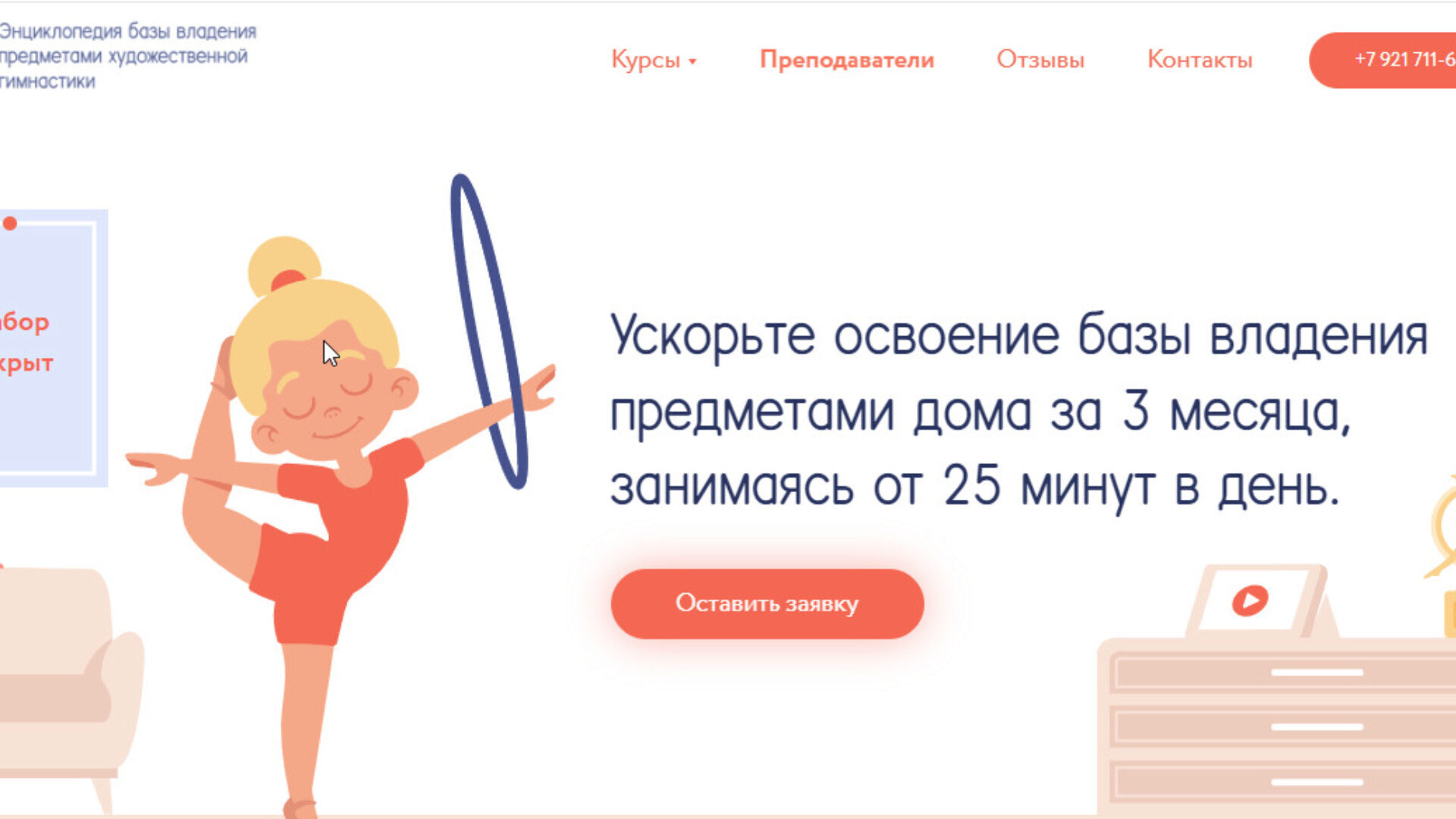 На курсе вы: Узнаете как правильно подготовить тело к выполнению элементов. Разучите новые элементы, с разной базовой стоимостью. Поймёте от чего зависит стабильность выполнения элементов. Более подробно ознакомитесь с терминологией художественной гимнастики. База без которой идти дальше невозможно