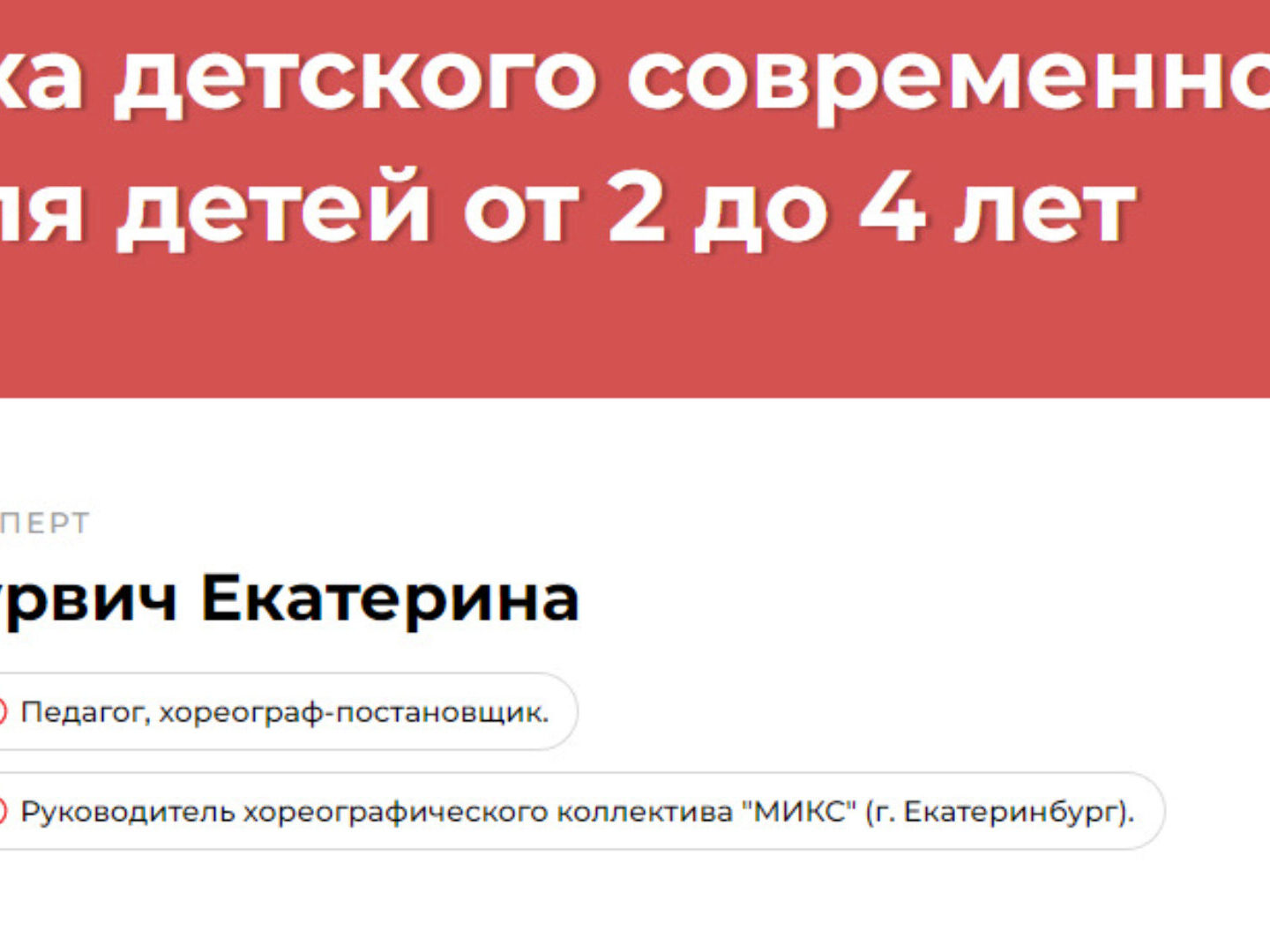 Отзывы о курсе «Методика детского современного танца для детей от 2 до 4 лет» от Екатерины Гурвич