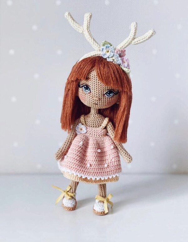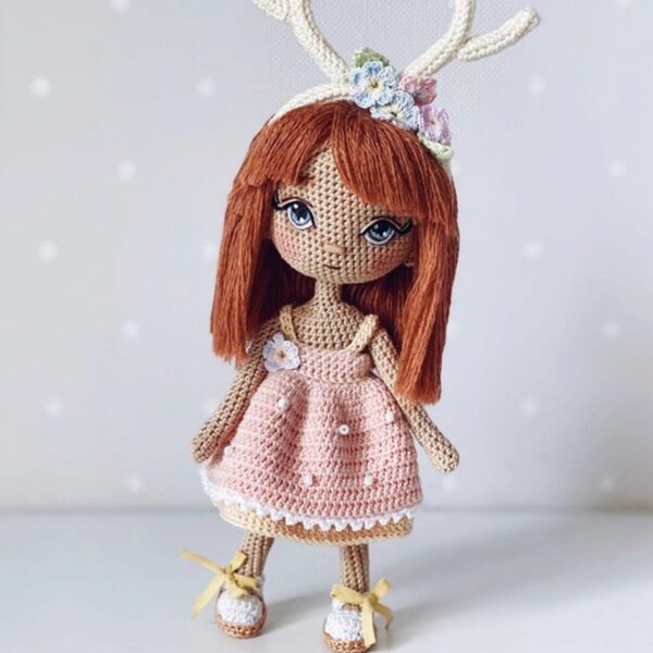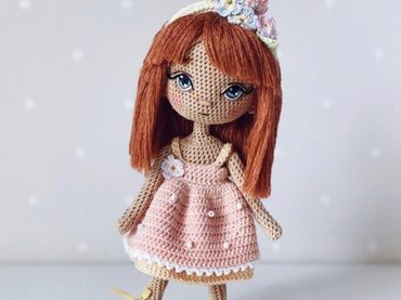 МК в формате pdf. В МК входит вязание тела (ножка фигурная), моделирование личика, прическа. Пошаговое описание наряда, вышивки, ободочка и горшка с цветами. Вставка каркаса и тонировка.