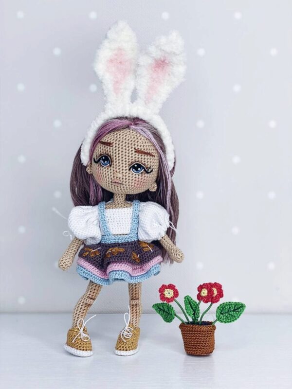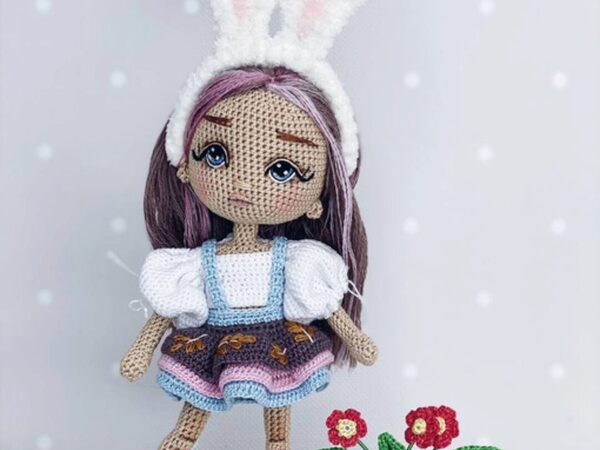 Куколка в ободочке с рожками ростом 16 см. Вся одежда съемная. МК в формате pdf, содержит 79 пошаговых фотографий и описание всего процесса: - вязание тела, - вставка каркаса, - формирование личика и прически, - тонировка, - платье, - ободок, - туфельки, - украшения.