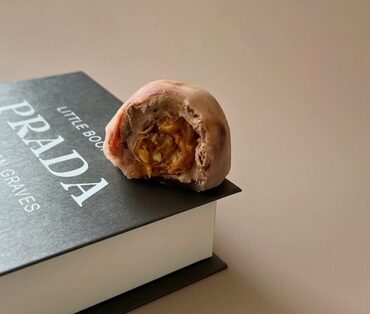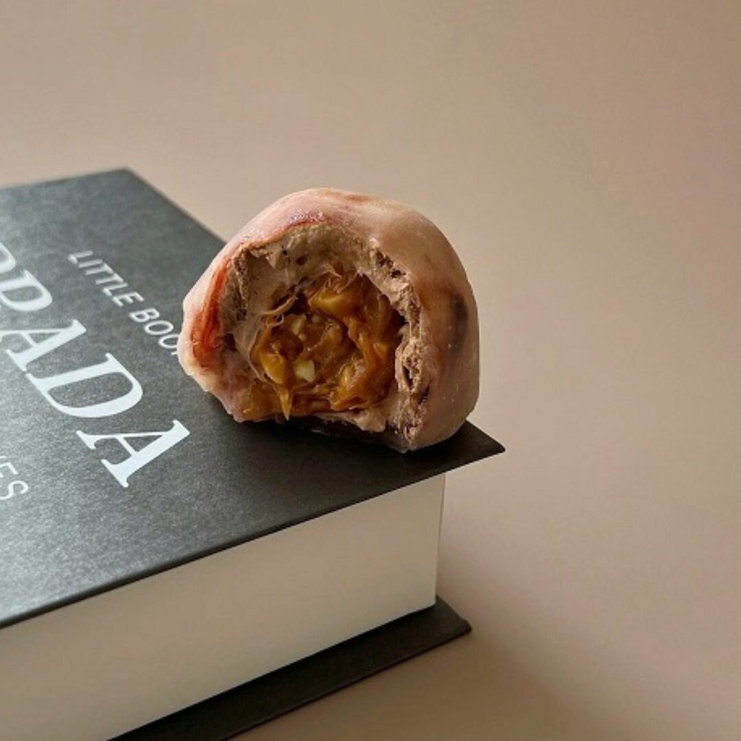 Основа начинки Моти «Карамельный попкорн» - крем на основе творожного сыра с добавлением карамельного попкорна, центр - соленая карамель. Моти оформлены глазурью. Технологическая карта в формате PDF.
