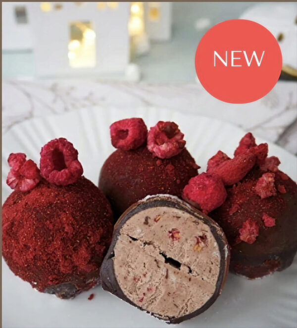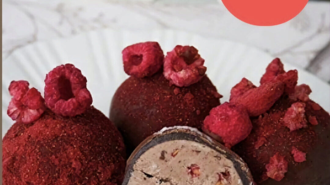 - крем на основе творожного сыра, темного шоколада и сублимированной малины