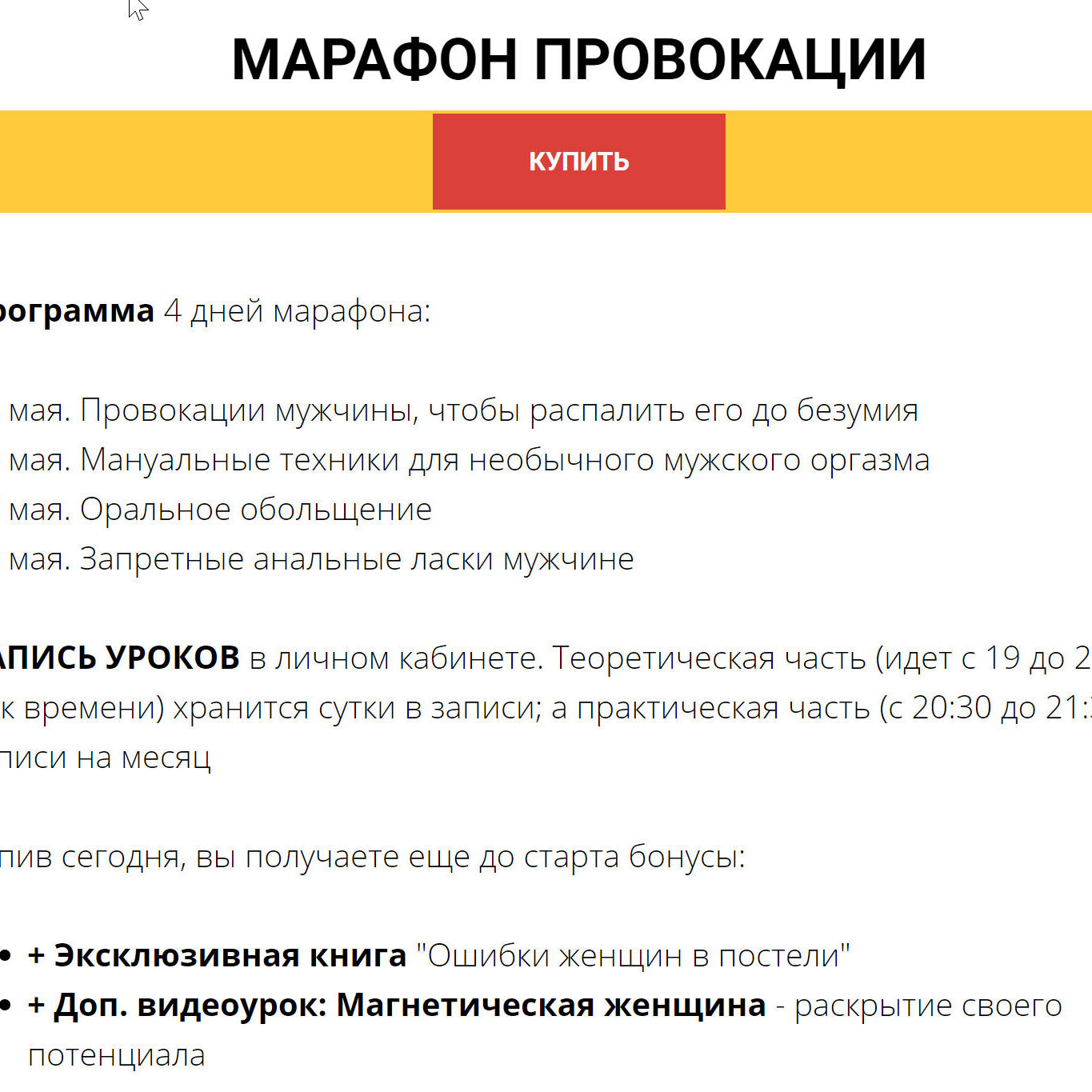 VIP УЧАСТИЕ В ОНЛАЙН-МАРАФОНЕ «ПРОВОКАЦИИ» с Екатериной Любимовой (Новый поток) 16-19 АВГУСТА 2018г. 19:00-21:30 Ты получишь: техники и продвинутые фишки: провокаций, орального секса, мануальные техники, анальные ласки мужчине Запись в личном кабинете. Теоретическая часть (идет с 19 до 20 по мск