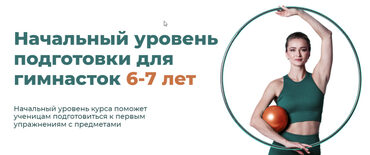 Мы рекомендуем заниматься по материалам, наиболее подходящим вашему уровню подготовки: начальный-продвинутый относится к 1 уровню, продвинутый-профессиональный - ко 2 уровню. Возраст имеет значение, однако не является ограничением Спецпредложение - 5 тренировок сразу (обруч, мяч, лента, булавы,