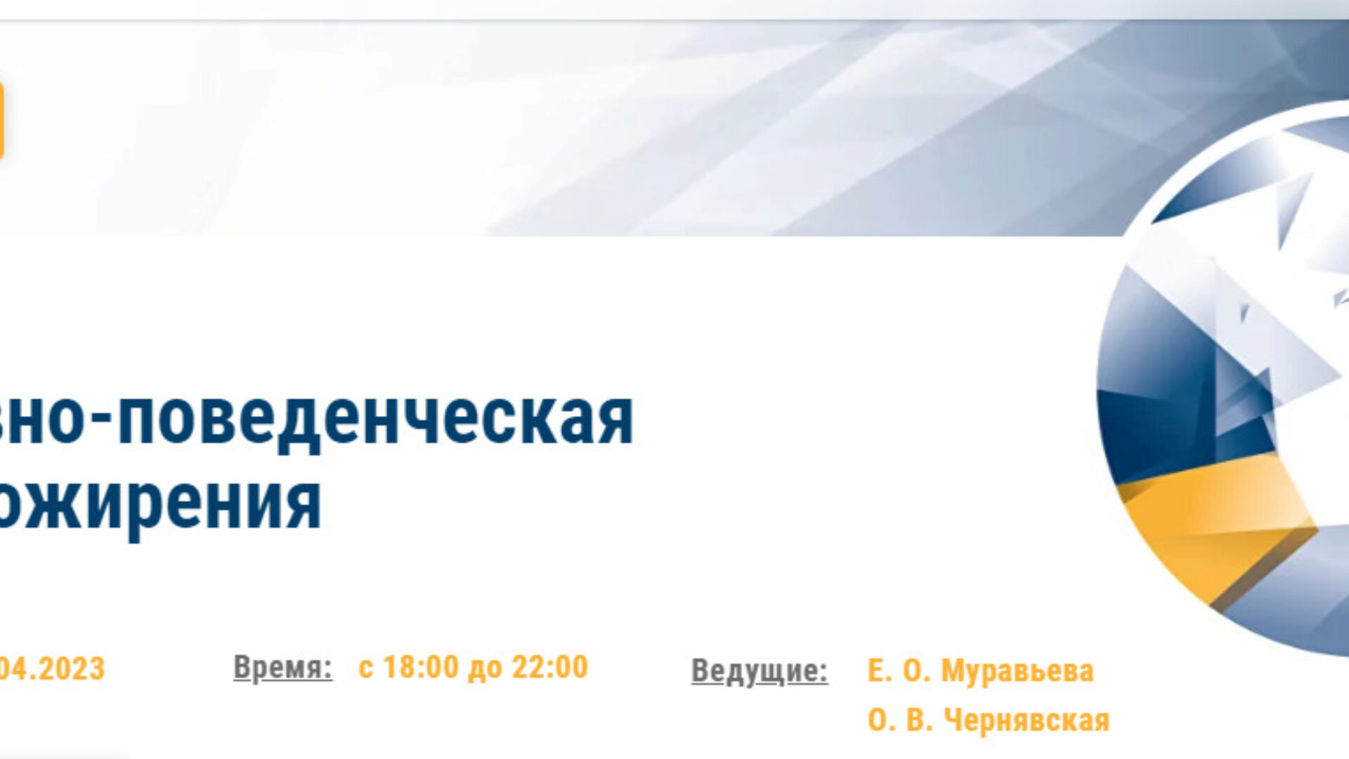 Первый в Российской Федерации курс, посвященный детальному обсуждению протокола «Когнитивно-Поведенческой Терапии Ожирения» (далее - КПТ-О).