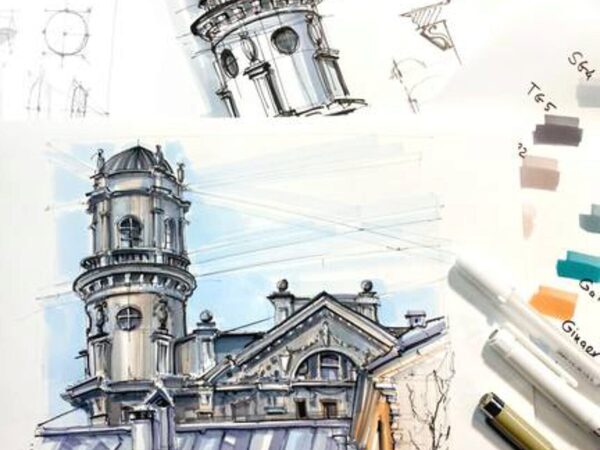 В подробных уроках шаг за шагом вы освоите графически объемы разных типов башен, разберем как понимать форму и важность перспективного искажения.