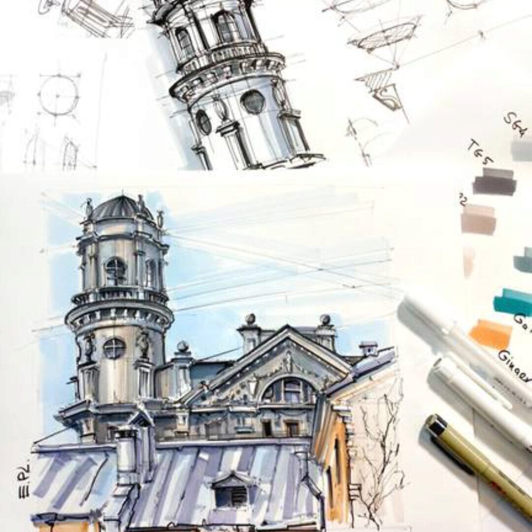 БЕЗ ЛИНЕЙКИ И ЦИРКУЛЯ, БЕЗ КАРАНДАША И С МИНИМАЛЬНОЙ ПАЛИТРОЙ изучим тему башен, чтобы ваши скетчи Санкт-Петербурга были неотразимы.
