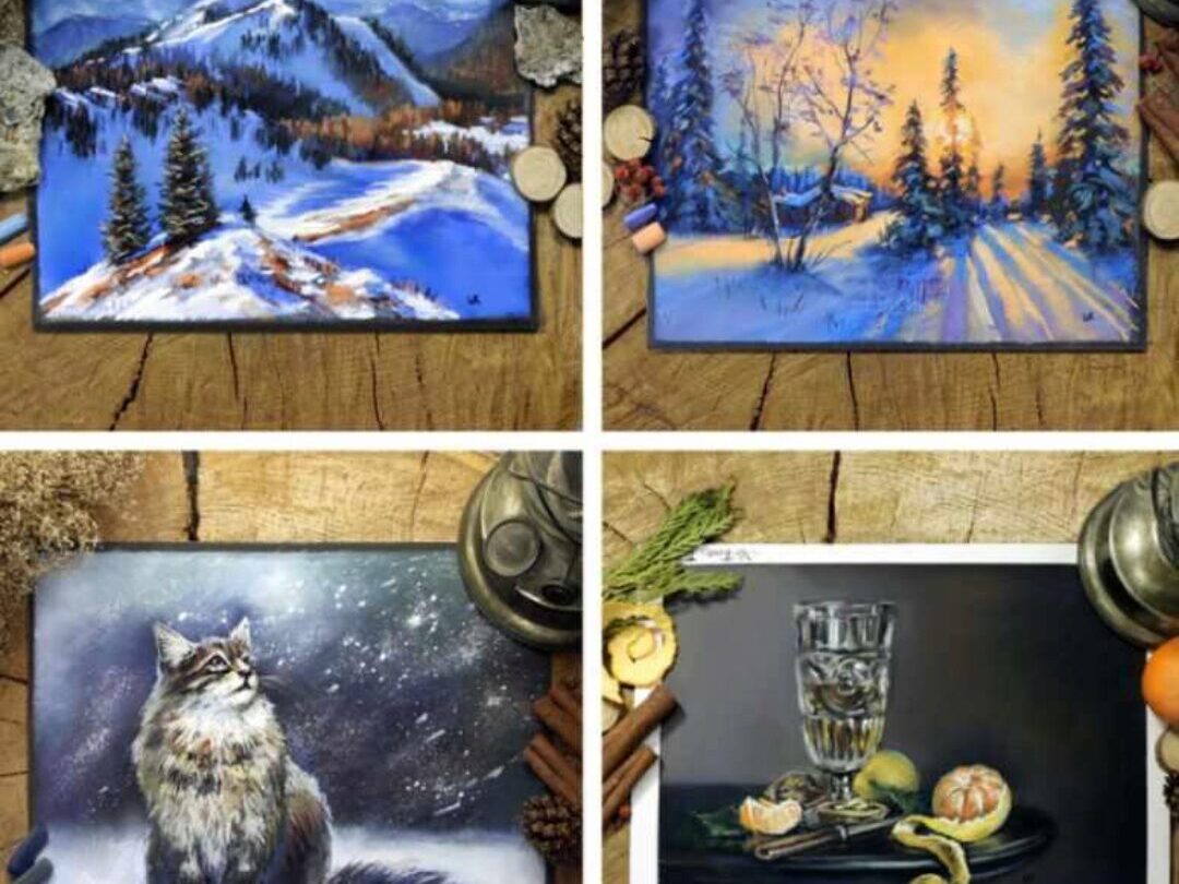По окончанию работы над курсом у вас будет 4 картины в зимней тематике,