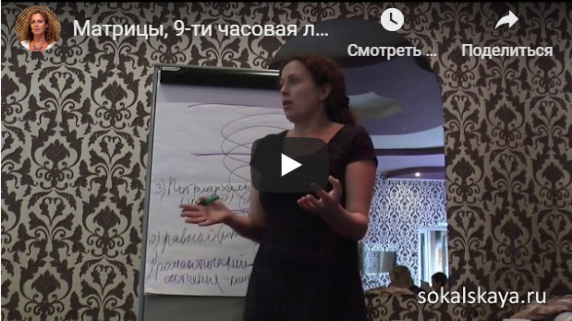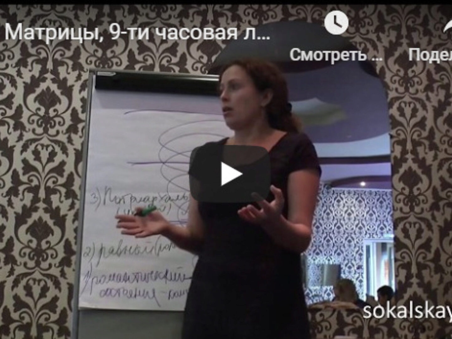 На данный момент наиболее подробная лекция про Возраст Души, про типы Матриц, виды брака и семейных отношений между разными Матрицами, возможные и невозможные способы коммуникации, энергетический обмен между мужчиной и женщиной и многое другое.