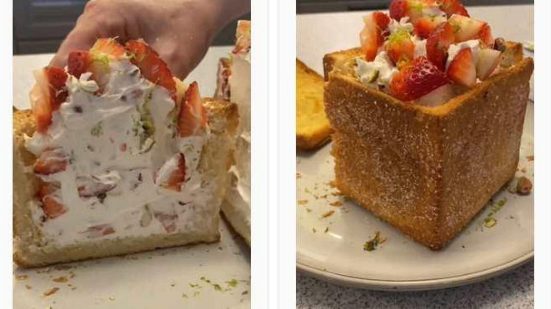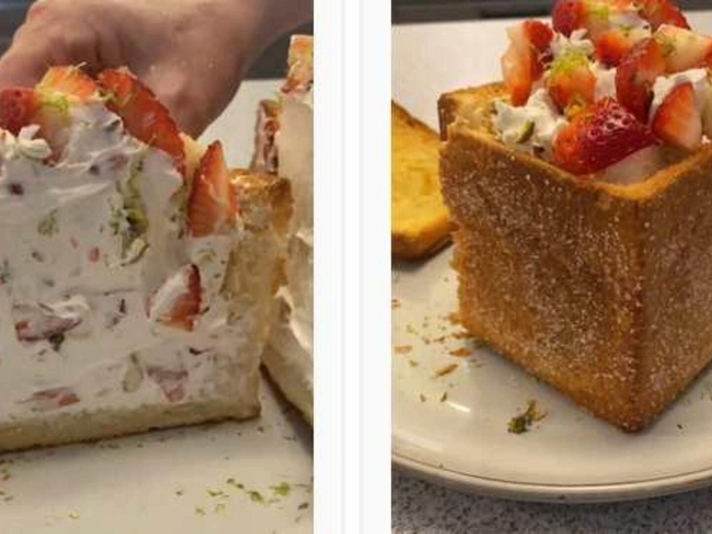 8. Сэндвич-куб с клубникой, сливками и фисташками