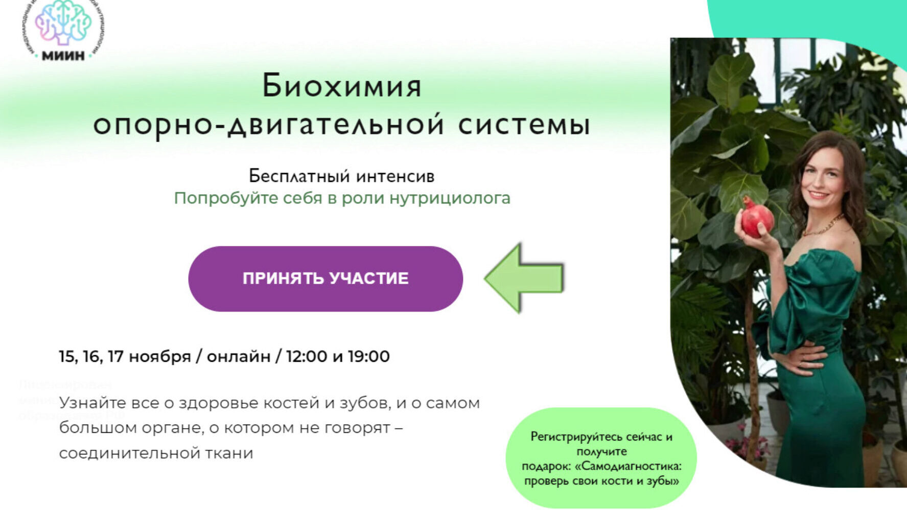 Кому будет полезен интенсив: тем, кто хочет начать принимать витамины с пользой для своего здоровья нутрициологам, врачам и другим специалистам, работающим в сфере здорового образа жизни тем, кто хочет разобраться в том, какие БАДы существуют и как правильно внедрить их в свой рацион тем, кто хочет