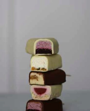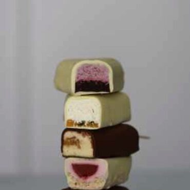 • Эскимо «Киндер» (песочная основа, шоколадный чизкейк, классический чизкейк с кусочками шоколада)