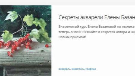 Курс lectoroom - Секреты акварели, автор Елена Базанова. В своем курсе Елена поделится уникальными приемами, которые помогут сделать ваши акварели чистыми и светящимися. Целых 2 месяца мы будем изучать особенности работы акварелью по сухому и мокрому одновременно без слоев! Много практики и персональные видео-ответы от автора.