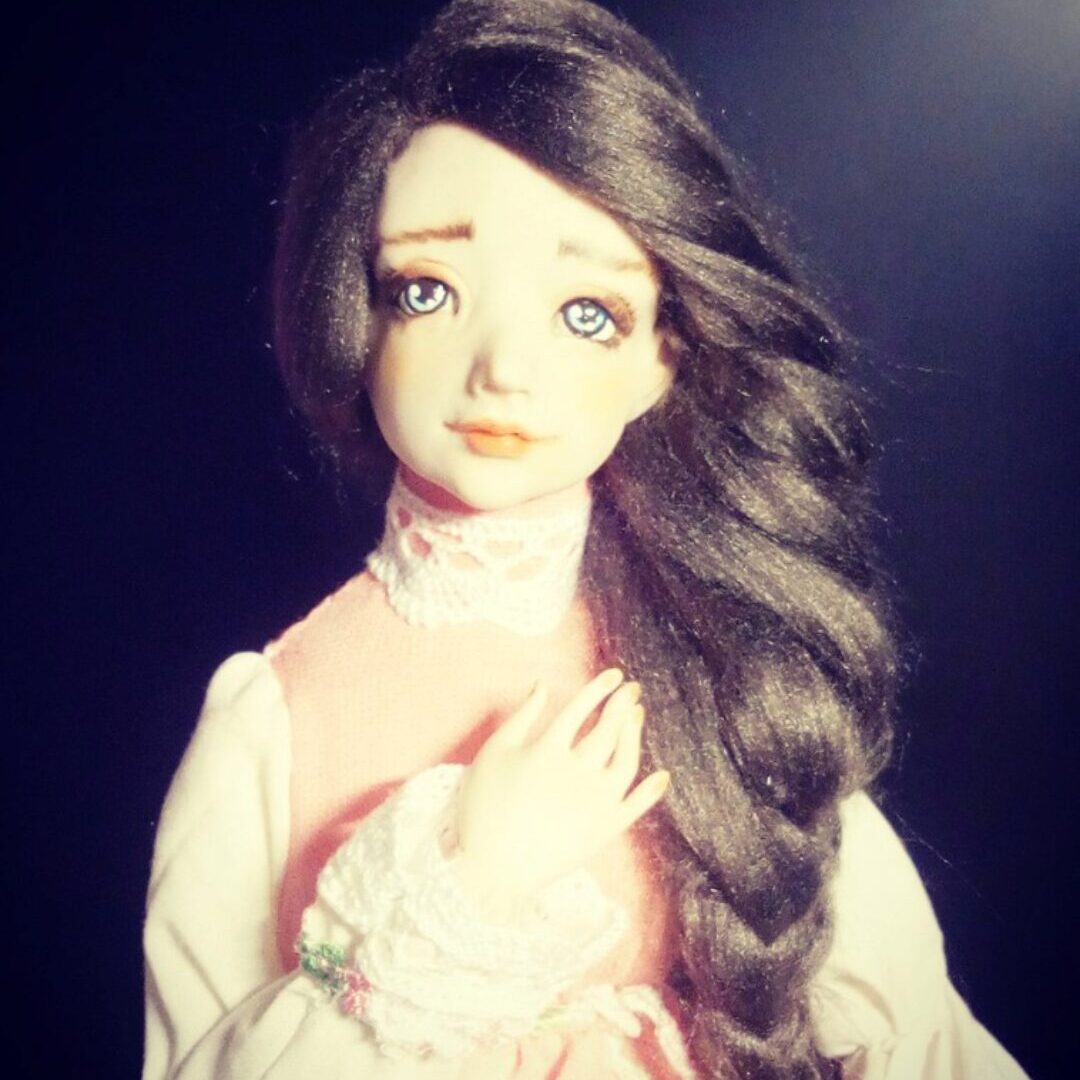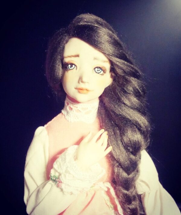 Лепка деталей куклы из самозатвердевающего пластика с поворотной головой и армированными пальчиками рук. Обработка деталей, роспись. Создание несъемного паричка из козьей шерсти. Пошив аккуратного тела со шплинтовым креплением конечностей и опилковым наполнителем. Сборка шарнирного крепления